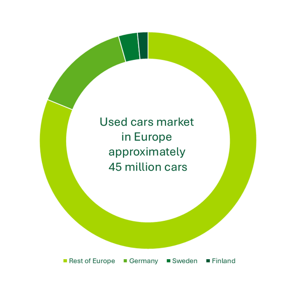 According to Kamux’s estimates, as many as 45 million used cars are sold in Europe annually, of which approximately 19% are sold in Kamux's three operating countries. In 2025, Kamux estimates that approximately 706,000 used cars were sold in Finland, approximately 1.27 million in Sweden and approximately 6.5 million in Germany.